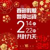 春節假期暫停出貨